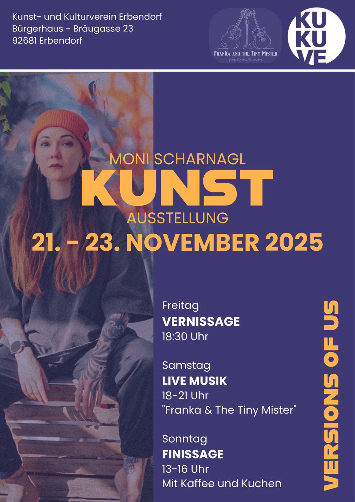 Die Kunst berührt seit jeher Moni Scharnagls Seele. Die Künstlerin aus Neustadt malt und zeichnet, seit sie sich erinnern kann. Die Realität erscheint ihr eintönig, weshalb sie sich das Leben lieber bunt malt. Sie drückt mit ihrer Kunst aus, was Worte nicht sagen können und fordert die Betrachtenden heraus, ihre eigenen Emotionen und Geschichten in den Werken zu entdecken. 2017 wagt Moni Scharnagl den Schritt in die Selbstständigkeit als Tätowiererin. 2020 eröffnet sie ihr Atelier in Neustadt, doch der Lockdown bringt sie wieder näher zur Malerei. Ihr Stil vereint realistische Porträts mit abstrakten Elementen.