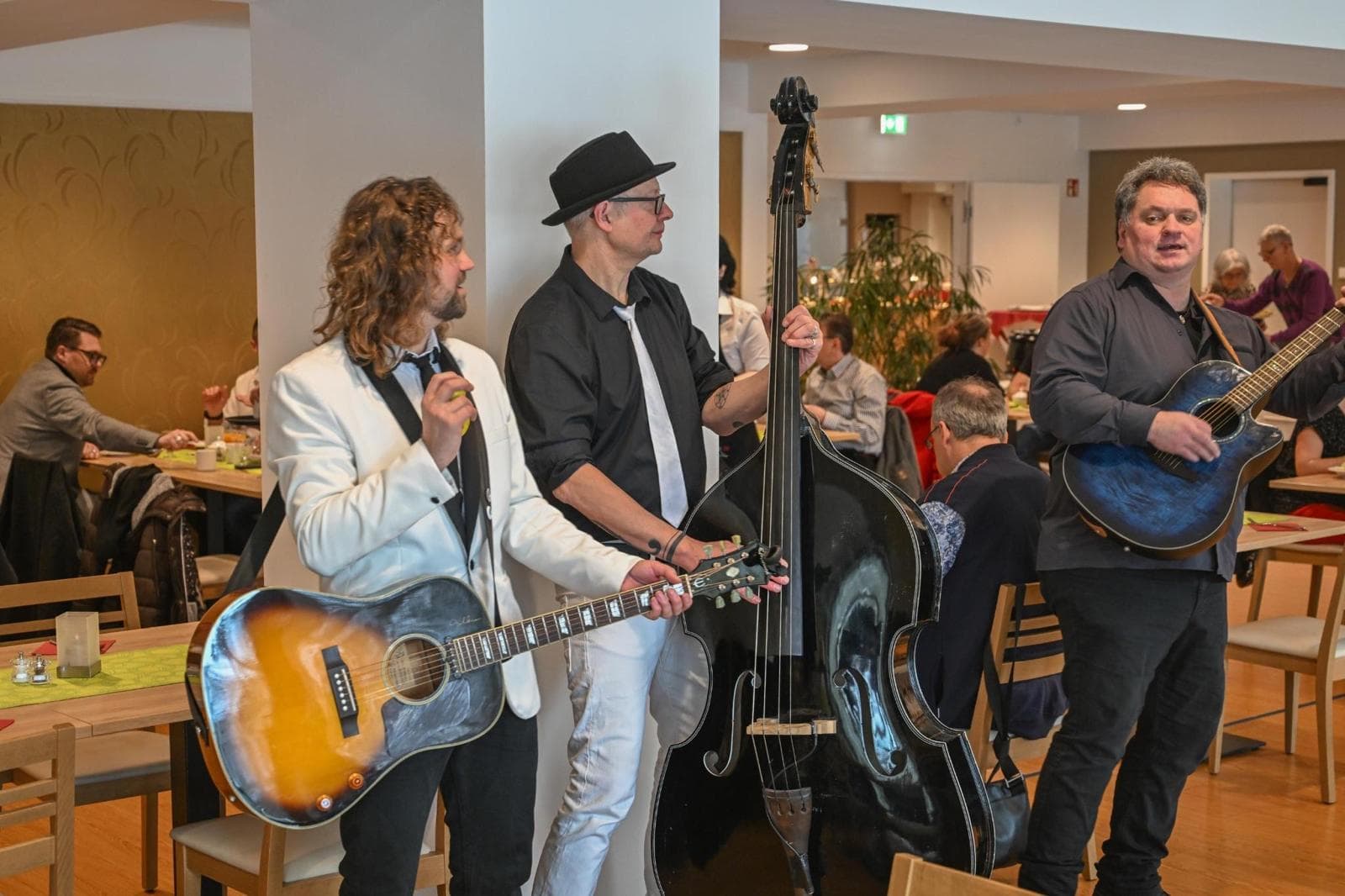 Mit großer Nähe zum Publikum bewegte sich das Trio durch den Raum, spielte direkt zwischen den Tischen und begeisterte mit ehrlicher, handgemachter Musik. Schon nach wenigen Minuten klatschten die Gäste begeistert mit – ein untrügliches Zeichen dafür, dass die Rockapittis erneut als Volltreffer gewählt wurden. Der Mix aus Spielfreude, Charme und Rock’n’Roll-Flair machte den musikalischen Teil des Brunches zum besonderen Erlebnis.